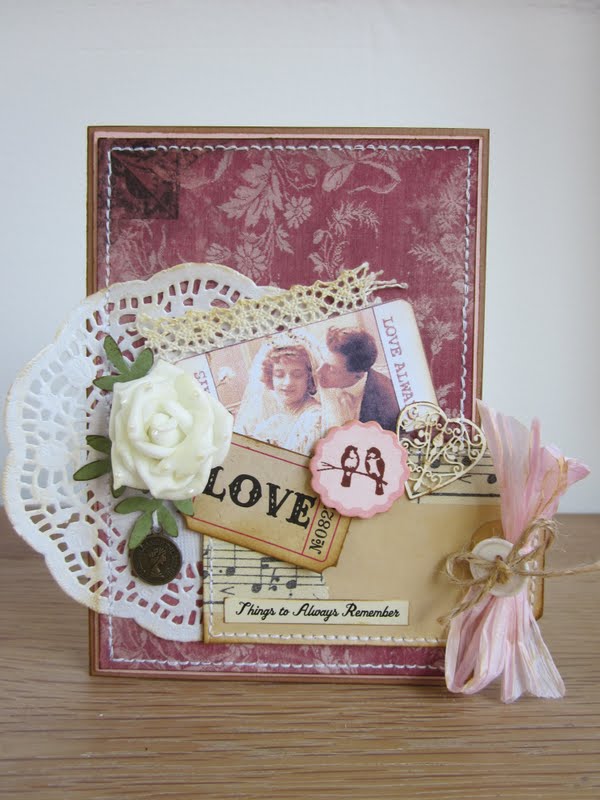 You must use all of these embellishments on your card or other paper-crafted creation. If you don't have truly vintage lace, just use something that has the appearance of being old. Don't forget that our challenges are for your vintage, shabby chic or primitive inspired projects. So rummage through your craft stash and challenge yourself to try your hand at one of these styles using the theme for this week. We can't wait for you to show us what you come up with.